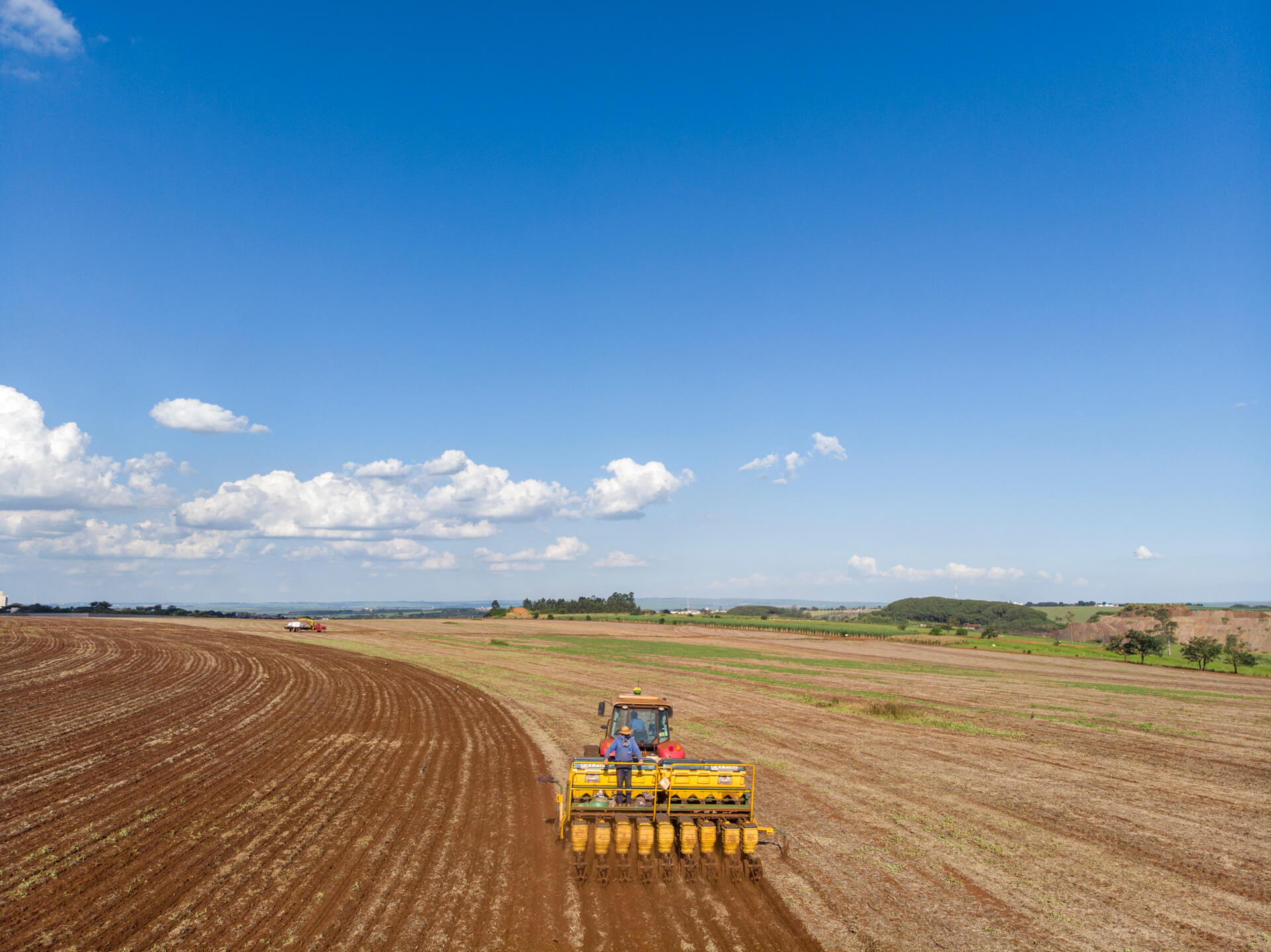 El trabajo consiste en apoyar al personal en la operación de las máquinas, asegurando un suministro constante de fertilizantes y semillas en las tolvas. Estas máquinas distribuyen los insumos directamente en el terreno, aplicando abono de manera precisa según el metro lineal, optimizando así la eficiencia en el proceso de siembra.